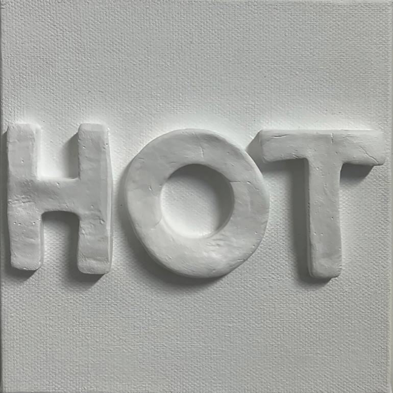 Living in Palm Springs it's very hot. However I think everyone right now is feeling the heat due to global warming. Handmade plaster letters stuck on canvas and hand painted with acrylic.