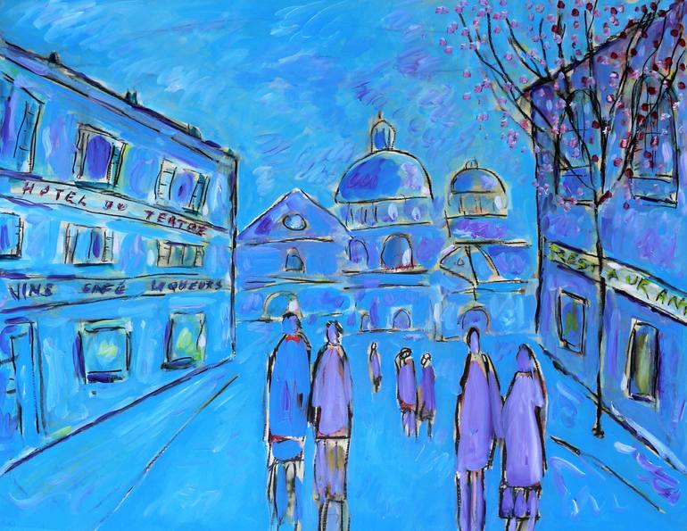 Hôtel du Tertre,Paris is a place in Montmartre. Here the scene is dreamy, unreal, the people are silhoueted as if not there anymore I'd like the viewer to enjoy the colours I love painting