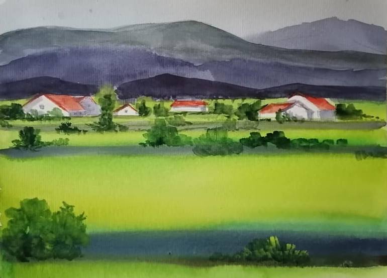 Houses by the Fields Painting