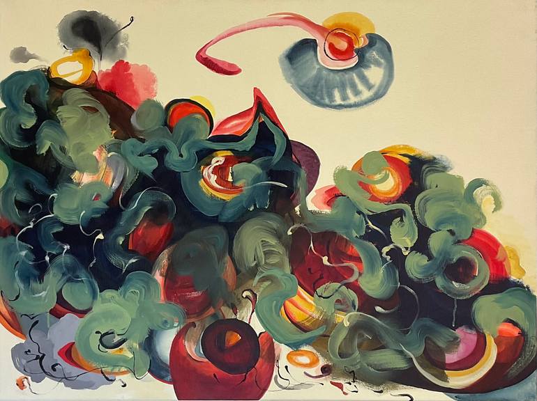 Julia Pinkham’s passion for nature expresses itself in her vibrant biomorphic compositions. Her lively abstractions are often based on natural forms and images that develop from her imagination. Julia has been self-employed as an artist for all of her life. Her work has been strongly influenced by her fascination with organic forms. Her current series of abstract paintings, done with mixed media and acrylic on both canvas and paper, reflect her ongoing interest in both the Surrealist’s “automatic painting” and the Abstract Expressionist movements in American art. She works full time at her art. ARTIST STATEMENT: “My painting method uses concepts developed in Surrealism, which employs automatism to create a dialogue between unconscious impulses and purposeful “left-brain” deliberation. I sometimes work with my brushes attached to long sticks, seeking to blend random actions with controlled, intentional ones to gradually reveal the images that appear in my paintings. I often work on more than one painting at a time, which allows me to avoid over-valuing certain aspects of my works that are in progress and come back with a fresh perspective.”