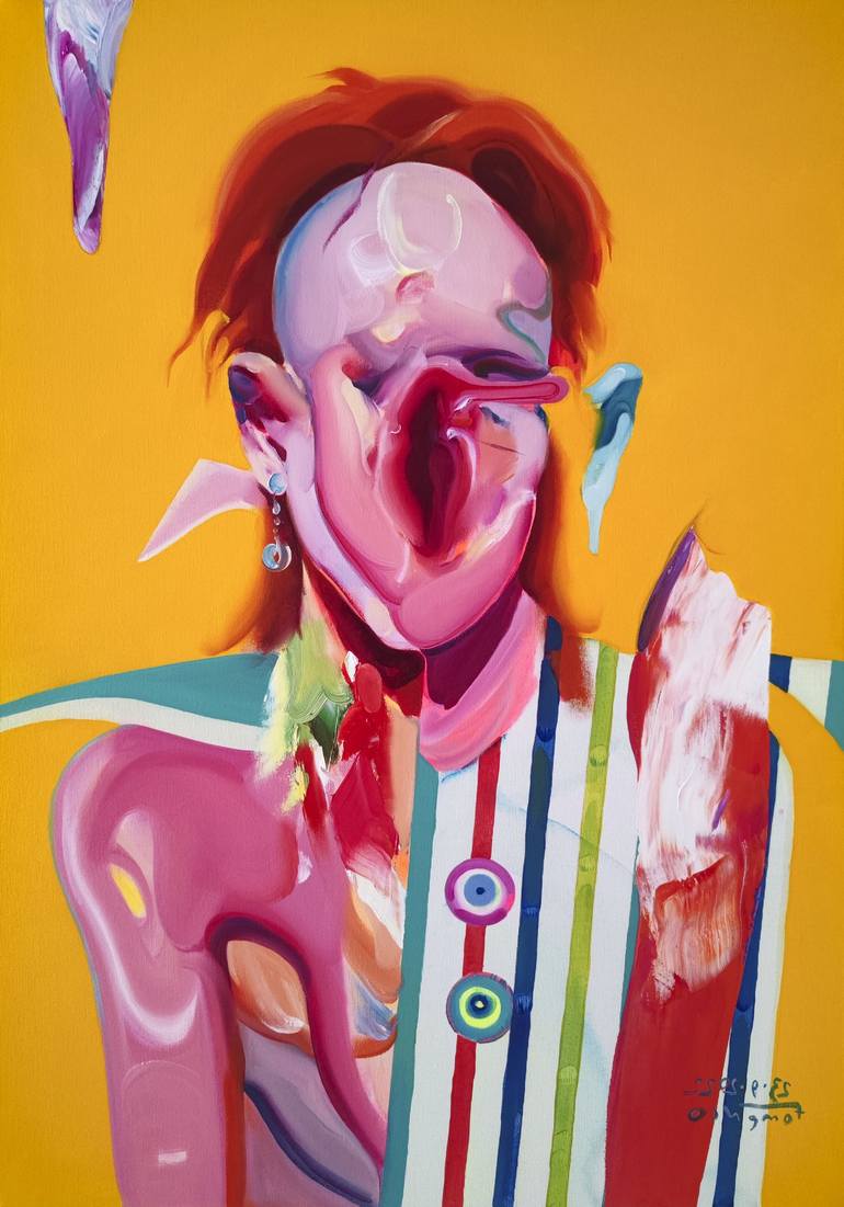 Maxim Fomenko is a contemporary artist born in Russia, known for his vibrant and abstract portraiture. Influenced by modernist masters like Picasso, Francis Bacon, and David Hockney, he brings a playful and provocative twist to their legacy. His paintings often feature distorted faces with surreal elements—like abstract shapes replacing eyes—creating a psychedelic effect that blurs the line between humor and unease. Fomenko’s work explores identity and the human condition, touching on beauty, death, and artistic legacy. His use of bold, often neon colors gives his art a dynamic, modern feel, while the distorted figures invite viewers to question their own perceptions. Though his approach echoes Bacon’s exploration of form, Fomenko offers a lighter, more whimsical interpretation. In series dedicated to figures like Alfred Hitchcock and Picasso, he reflects on celebrity and the inner world of the artist. His “Melting Faces” works highlight the existential struggles of today’s creatives, especially in a world where artistic originality feels increasingly elusive. Fomenko examines the pressures artists face in the shadow of historical greatness and what it means to be a creator today. His work has been exhibited across Europe and is part of major collections, including the Bavarian State Collection in Germany. With bold visuals and thought-provoking themes, Fomenko’s evolving style continues to resonate globally, making him a distinctive voice in contemporary art.