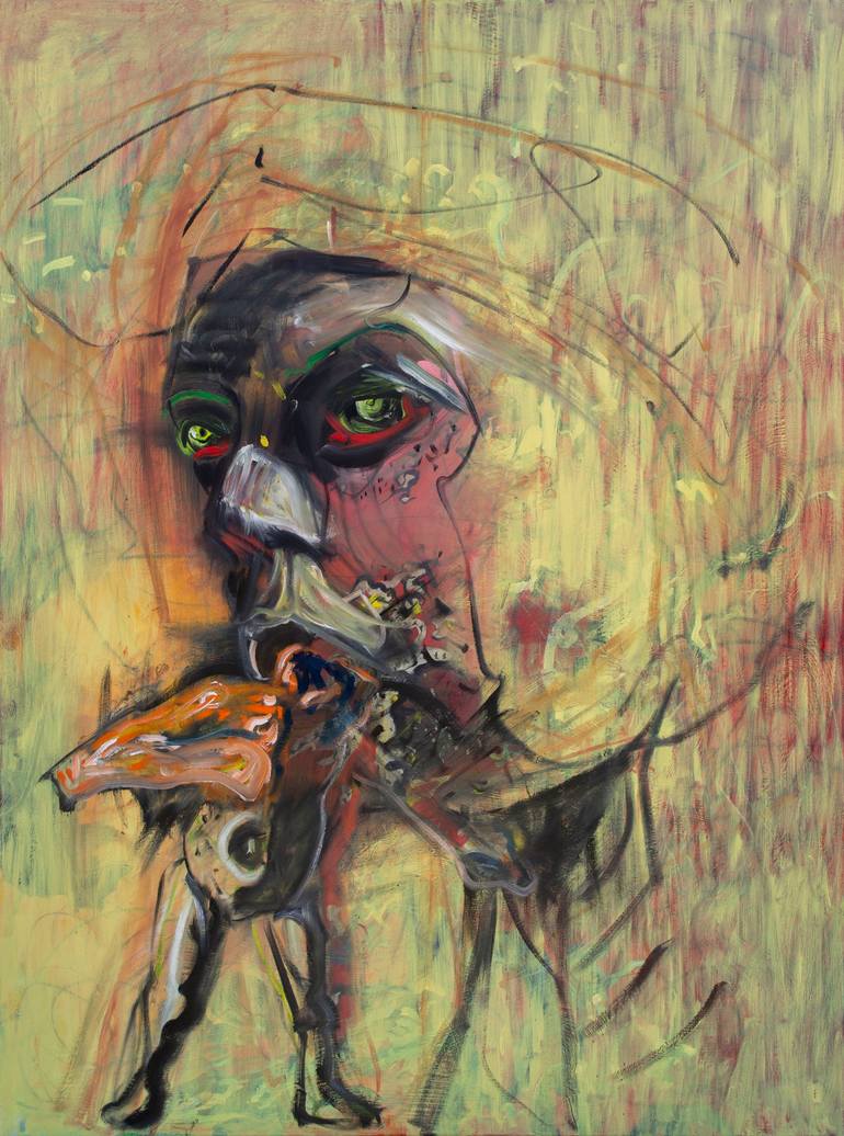 I painted this mid-Spring when my emotions were running high, as they always do at that time of year. I felt vividly alive, as if I were a snake emerging from a brumation period. In my art practice, this aliveness was translated into the desire to paint myself consuming another organism whole, just ...