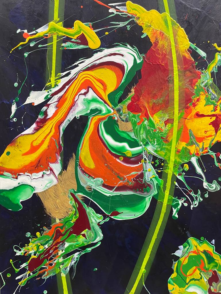 On this painting, I went pretty wild with the colors. I wanted something to really stand out, and as I stepped back, I saw a hurricane brewing hence the name hurricane. Notice the bottom right I figure looking up and a red face in the middle of the hurricane could one be God, you make the decision...