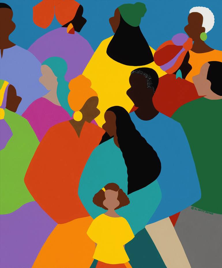 ***My Multicultural World*** - First Table Art Book: Kindle/Paperback/Hardcover: Self-Published on January 2, 2022. Synthia SAINT JAMES’ art and celebrity has been utilized in numerous promotional campaigns for such companies as Royal Caribbean International, Johnson & Johnson’s Ambi, Liberty Mutual, Seagram’s, Union Bank of California, Washington Mutual Bank, Maybelline, Kayser-Roth, Coca Cola USA, Essence Communications, Barnes and Noble, and AARP (a painting design for a Metro Rail Train). SAINT JAMES’ United States postal stamp designs include the first Kwanzaa Commemorative Stamp in 1997 (a total of 318 million stamps were printed using her first design), and the 2016 Forever Kwanzaa Stamp celebrating the 50th anniversary of the Kwanzaa holiday. Her artwork in hospitals include commissioned originals for Glendale Memorial Hospital, Glendale, CA and Sisters of Providence, Seattle, WA, and fine art reproductions that grace the walls of such hospitals as Kaiser Permanente, Martin Luther King, Jr. Community Hospital, Glendale Adventist Medical Center, City of Hope Medical Center and Bridgeport Hospital. SAINT JAMES’ public art designs include a 2’8”x150 foot mural design for Ontario International Airport International Baggage Claim, Ontario, CA, six 6x9 foot elevator lobby door designs for California’s East End Complex, Sacramento, CA, three 45x22” stained glass windows for the West Tampa Library, Tampa, FL, and a 4x7 foot ceramic tile mural for Cowan Elementary School, Westchester, CA. United States Ambassadors have requested that the art of Synthia SAINT JAMES be included in the interior design of their embassies through the Art in Embassies Program since 1991. A partial listing of the embassies include Caracas, Venezuela, Gagnoa, Ghana, Abidjan, Cote d’Ivoire, Abuja, Nigeria, The Republic of the Congo Brazzaville, Asmara, Eritrea, Singapore, Lome,Togo, Valleta, Malta and Juba, South Sudan. With a focus on multicultural figurative paintings, SAINT JAMES also creates vibrant seascapes and landscapes that capture the essence of countries all over the world and even a series on butterflies. SAINT JAMES’ artwork has been described as “ebullient”, “bold”, “she creates paintings that remind one of Matisse cutouts in their clear line and intense color” and “joyful”. “SAINT JAMES’ paintings have a healing power that soothes and comforts our souls.”