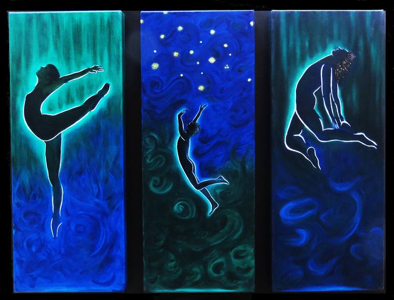 Triptych on 3 canvas fixed on a wooden board painted black The photo could not pick up the green colour which is much more intense! “Shoot for the moon. Even if you miss, you'll land among the stars.” ― Norman Vincent Peale