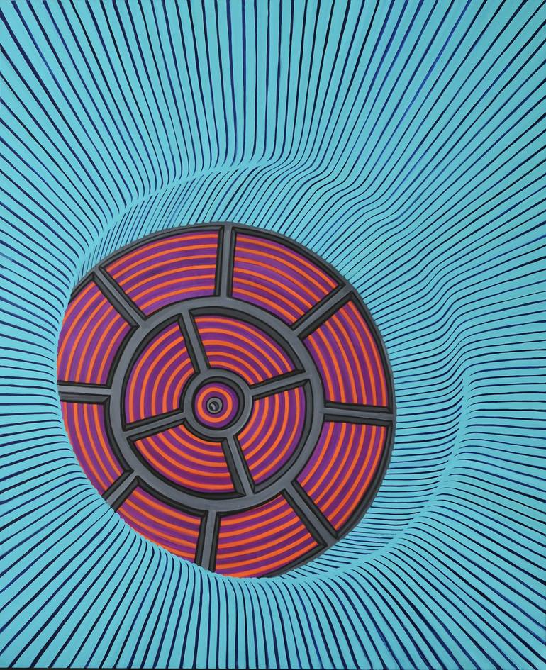 This is part of my Hypatia's Window series. Exploring the concept of 'conditional optimism' my work confronts dominant narratives of pessimism and celebrates science-driven human progress. My Hypatia paintings form a study of the Apollo 11 spacecraft's F-1 rocket engine Injector Plate and Hypatia (...