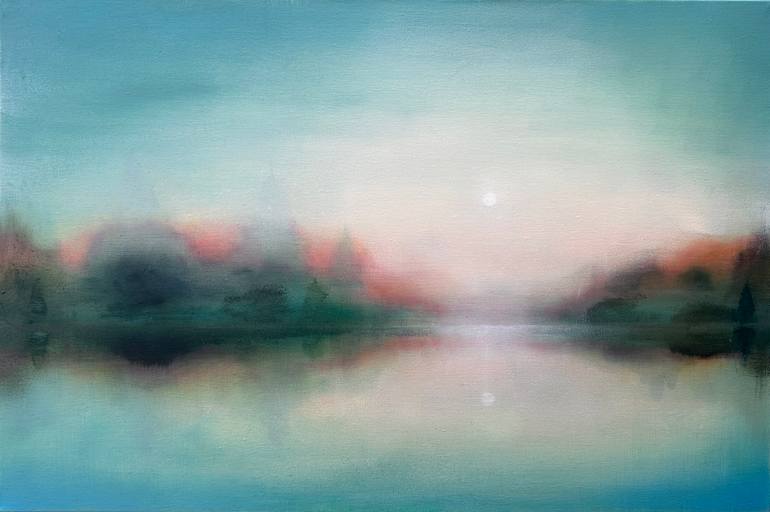 Simone Russell is a London based artist who creates atmospheric abstract landscape paintings. She trained at Glasgow School of Art. Alongside her art practice she has established a successful career in fashion and interiors. Simone is influenced by her surroundings and the emotional responses that arise. Themes include light, colour and sound. The inspiration for her most recent work derived from textiles she has collected throughout her life. The starting point for many of these paintings involved her resting the camera directly on to these fabrics. Simone wished to emphasise the importance of touch and contact. The resulting photographs were luminous abstract colour fields. The compositions that emerged evoked landscapes: the Northern Lights, seascapes, reflections in water. In a quest to capture the light in the photographs, she worked with thin skins of spray paint and used diluted oil paint. Experimenting with the opacity of each medium, in order to convey their subtlety and to allow previous surfaces to be seen. Layers are built over days, weeks, months - each one a snapshot in time. Simone’s hope is to create something beautiful from an amalgamation of all that has gone before. No coating is a failure, nothing is imperfect, every mark is a necessary part of the whole. The final artwork is richer because of the echo of what is beneath. Earlier this year she had her first solo exhibition at Willesden Gallery in London.