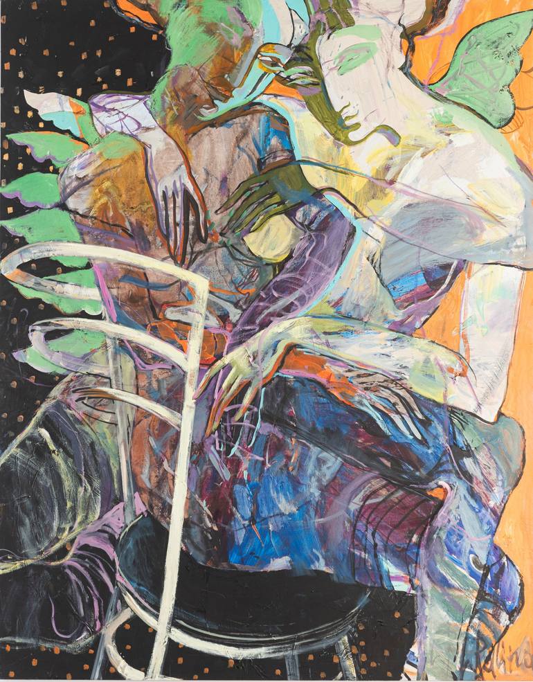 "I Dream About You" is a mesmerizing, large-scale painting (110 x 140 cm) that transports the viewer into a realm of surreal beauty and emotional depth. The fluidity of the figures, intertwined with vibrant, abstract patterns, creates a dreamlike atmosphere. . The central figure, symbolizes freedom,...