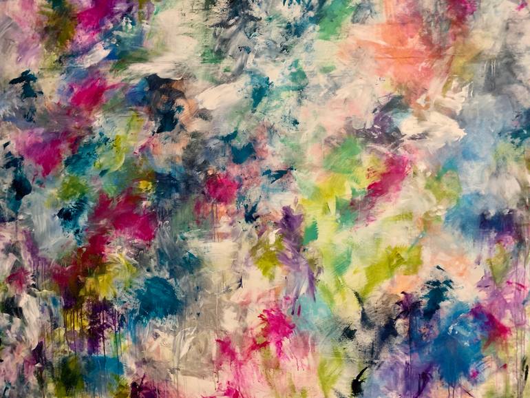 "I Got All Ya Need" The artist has again been inspired by Joan Mitchell with this gestural melody of colour and rhythm. Colours upon colours with expressionistic swipes using a brush and her hands she has immersed herself in this original. Spontaneity and an informal process as with using her han...