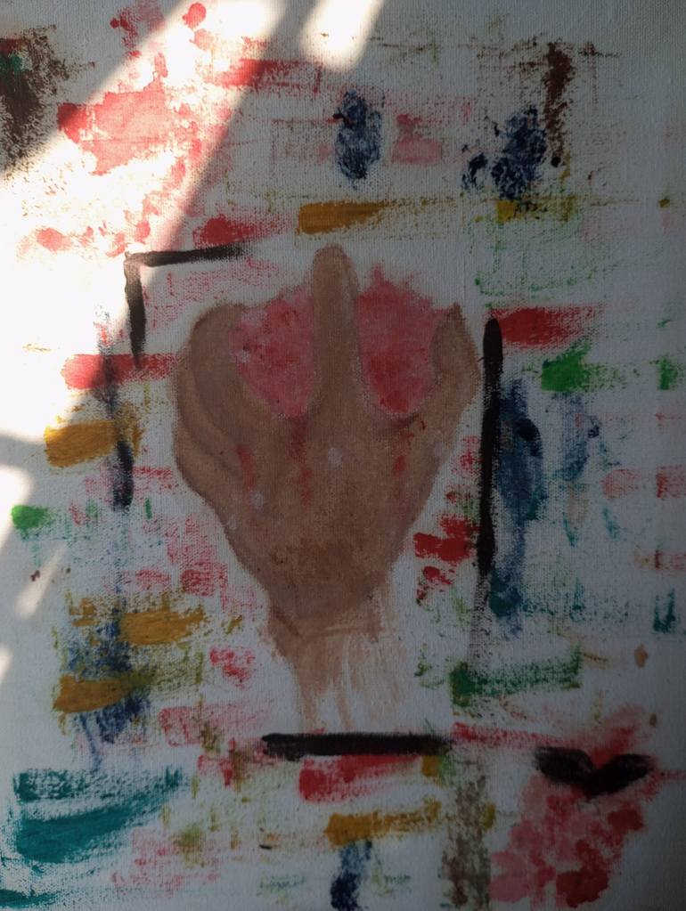 This painting tells the story of a hand that may be wounded, yet from that wound, a flower grows as a symbol of strength and hope. Amidst the pain it endures, this hand continues to firmly grasp all the emotions that come, both bitter and sweet, blending together in the surrounding colors. Each bru...