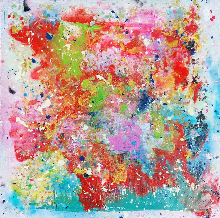 Giuseppe Valia's work "I Lost Direction" is an explosion of bright and contrasting colors that evoke a sense of loss and dynamic chaos. Splashes, stains and chromatic overlaps create movement and emotional tension, balancing chaos and harmony. The bright tones, such as red, green and blue, blend tog...