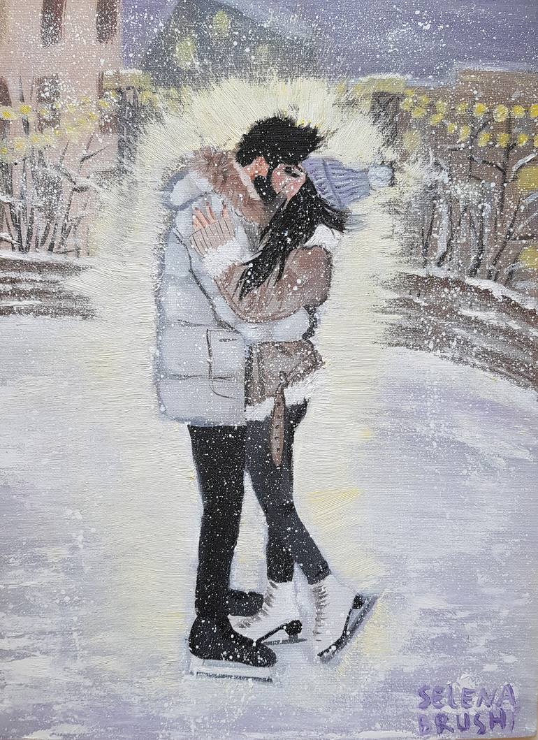 Canvas on cardboard, 30x40cm, oil. ********** When people are in love, they shine. They attract the views of others. This energy of passion fills the space around. A date on ice is very romantic. The partner supports his partner, they slide and circle, and then merge into a kiss. Maybe they have kno...