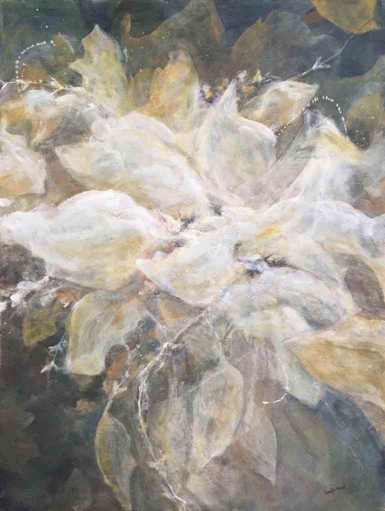 Expressive abstract floral garden captured in translucent and textured layers upon layers take you within the depth of mystery of the fleeting moment of its inspiration.