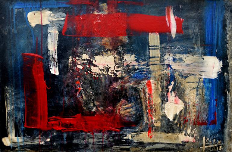 Teresa Cabo’s impassioned oil paintings are dark in color but lively in dynamic and emotion. Cabo paints with an eye on narrative and the element of surprise. She is an observant portraitist, with a knack for capturing a subject in a moment at once contemplative and dramatic. Her broader subject matter, however, often falls between stylized and outright symbolist imagery, with flashes of light and swirls of color standing in for events and bursts of energy. Cabo questions the visible and the material. Her work in the fields of biodiversity and ecology also deepens her exploration of the natural world through the medium of paint. Cabo was born in Montevideo, Uruguay. She paints with brushes and spatulas, as well as working with mixed, recycled media.