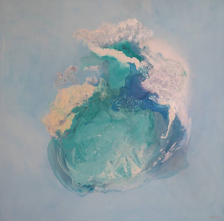 The Painting Ice Flo no. 8 is one of a Series of paintings made since 2010 until 2019 They are an abstract expression of the aerial views of rivers of ice from melting Glaciers move slowly move toward the coast and tumble into the seas below. The climate change has been evident for many years and...