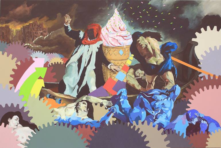 This painting was inspired by E. Delacroix's Dante in Hell. There is a lot of matters involved in this work but I prefer to leave it to the judgement of the viewers.