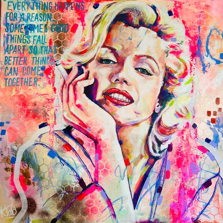 Original contemporary and expressive painting by Kirsten Todd. Acrylic and spray paint on canvas, signed on the front by the artist. Unframed ready to hang and delivered with a certificate of authenticity. This portrait of Marilyn Monroe is one in the series Iconic Women. Marilyn Monroe’s timeless ...