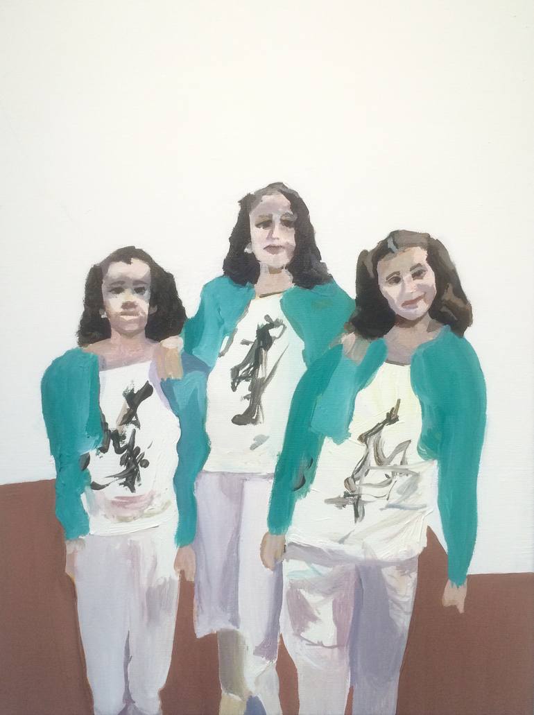 three sisters are portrayed in identikit outfits