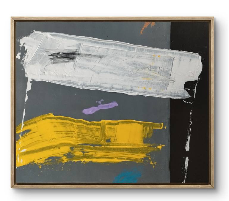 Abstract painting 60/50 cm acrylic on canvas white minimalism yellow