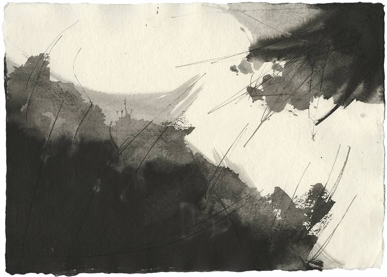 Sumi Ink on Bhutan paper, 2018. I literally never plan. I try to stay with the moment. It’s kind of like a meditation. I try to ground myself in the moment and appreciate everything. Even the spots that are all over the place, they are part of the big picture. That comes from Zen philosophy, to acc...
