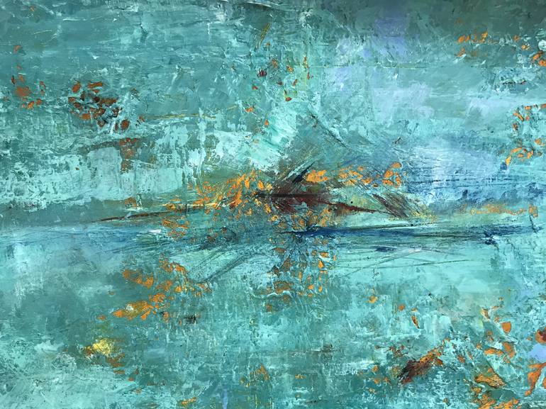 This Framed Abstract Oil painting, is pure colour with depth and subtle texture. Layers of multi layered oil paint in vibrant turquoises, rich blues and green shout decidence. An underlayer of Indian yellows burnt oranges dictate an air of opulance from perhaps another time?
