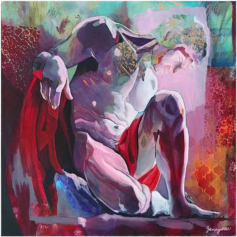 "Immortal Gladiator" is a striking reimagining of the famous Hellenistic sculpture "The Dying Gaul." Inspired by the sculpture's tragic beauty, I sought to transform this figure into a symbol of enduring strength and vitality. The painting depicts a muscular nude gladiator, modestly draped, embodyin...