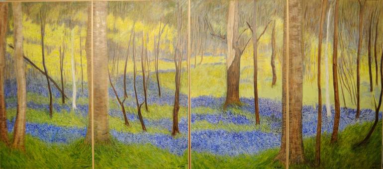 The paintings are of the wood at Dun Na Ri (The fort of kings) in county Cavan Ireland. In late spring to early summer they are carpeted in rivers of blue bells, which flow out under the canopy of trees in all directions. The four canvases (“In Blue Bell Woods one to four”) capture a fleeting glim...