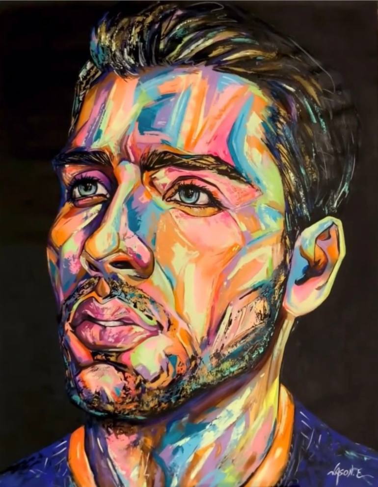 A lovely new painting of a handsome gay male “In Love”. The painting is in my beautiful spontaneous realism style. Lovely bold colours that will surely add warmth and energy in any room setting.