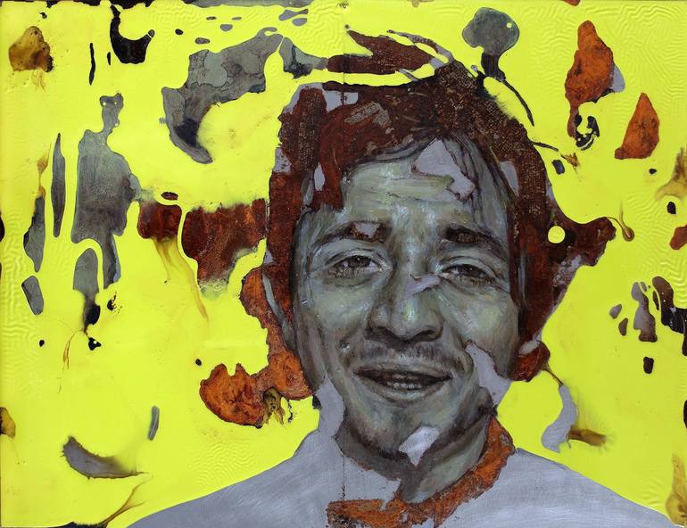 I’d like to reflect on people who left too early, because of other people and not for coincidence. I would like to imagine a group of paintings under the title “In Memoriam”, in memory of… the almost fluorescent yellow makes me think, since my childhood, of news stories. There will be more faces, m...