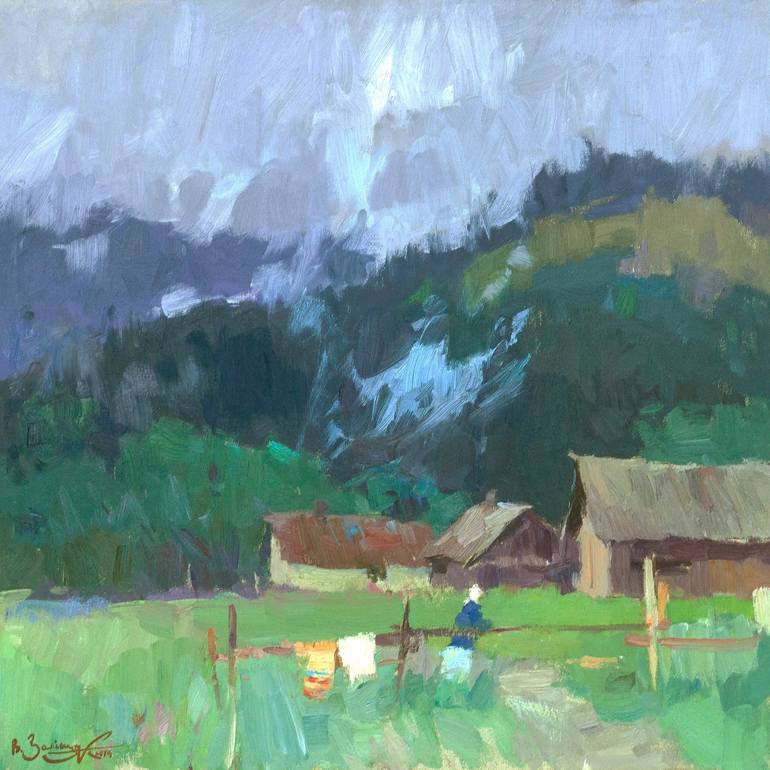 ARTIST:Valeriy Zalishuk TITLE: «In The Carpathians» MEDIUM: Oil on Canvas YEAR: 2014 DIMENSIONS: 50 х 50 х 3 cm. / 19,7" x 19,7" х 1,2" in. WORK: Original oil Painting, Handmade artwork, landscape painting COLOR: Green, Blue DESCRIPTION: This atmospheric oil painting captures the rustic beauty of a...