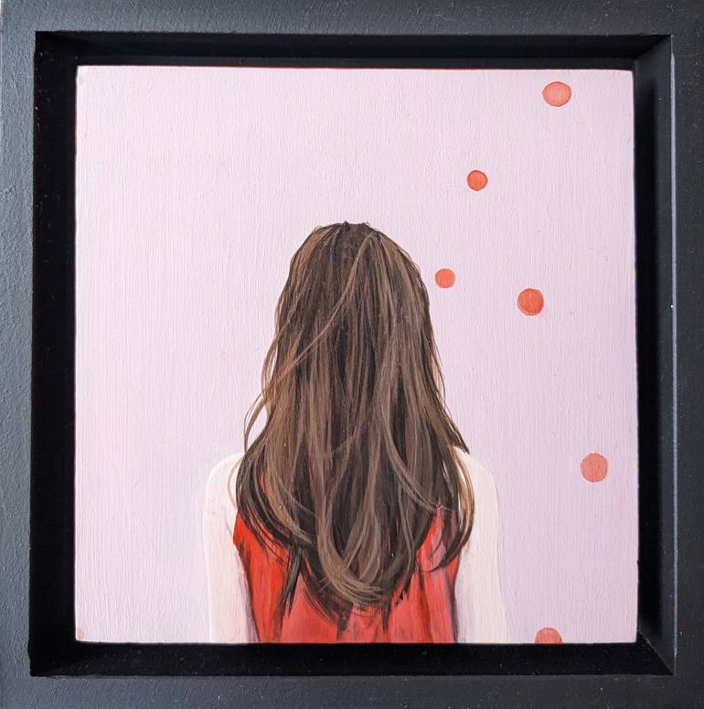 In my work, I explore quiet, psychologically charged moments in which figures elude direct observation. The women depicted from behind become projection surfaces for inner states, memories, and emotional transitions. Instead of showing individual portraits, I bring the invisible to the fore: what lies beneath the surface, what is left unsaid. Through a reduced visual language, clear compositions, and a focus on color palette and posture, I create spaces in which silence and tension coexist. Lines, soap bubbles, and golden elements act as visual resonances—traces of thoughts, movements, or relationships that surround and influence the figures. My painting moves at the intersection between figurative representation and atmospheric abstraction. It focuses less on narrative and more on emotional atmospheres, inviting viewers to activate their own meanings and experiences. This creates a subtle intimacy that is conveyed not through facial expressions, but through posture, gestures, and anonymity.
