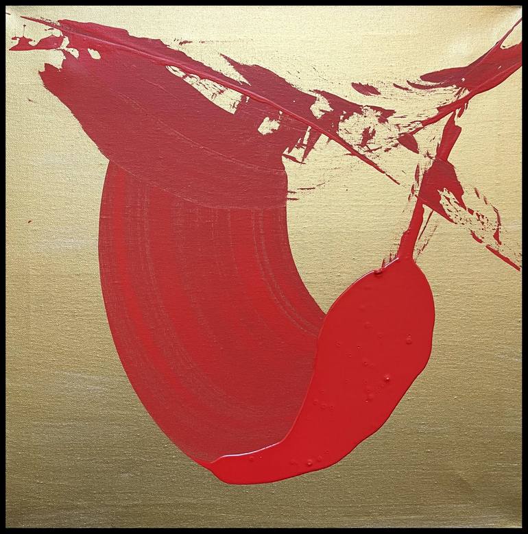 second canvas , Poetic evocation of the wings of a red butterfly in the house - it twirls in the light of day... red and gold meet to testify to the gesture and the ephemeral