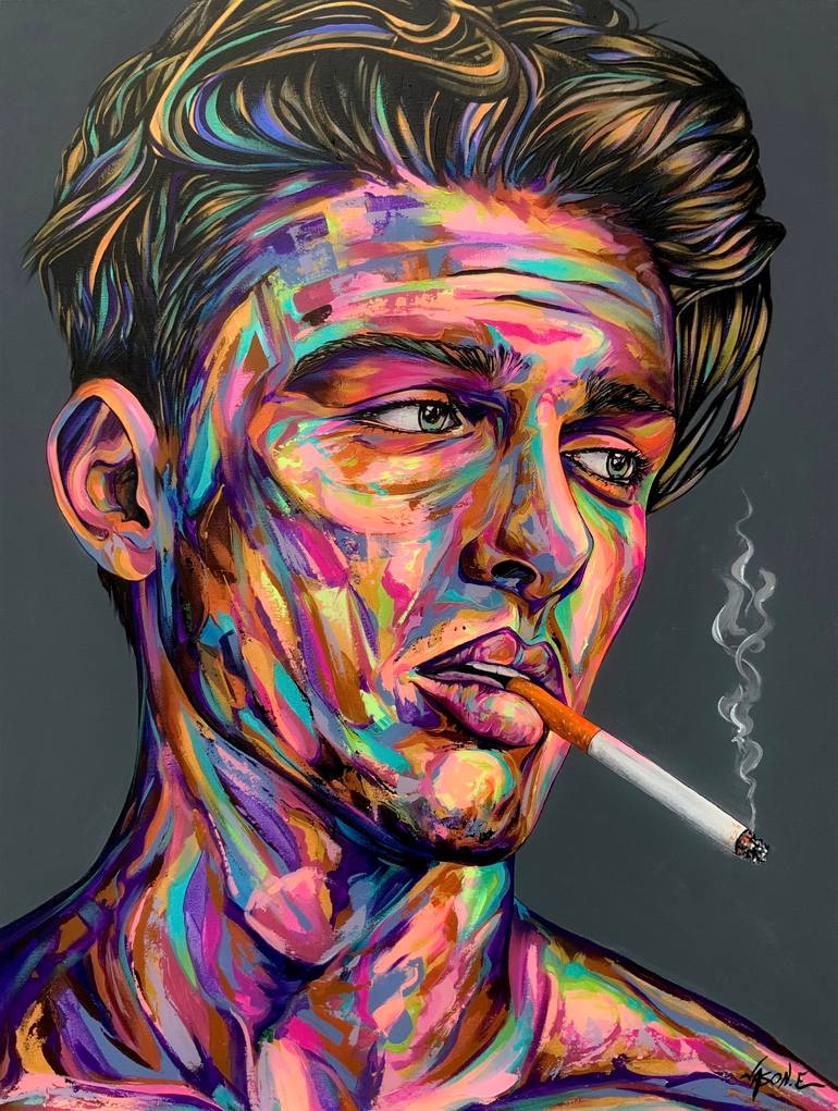 A lovely new original painting of a handsome nude male smoking a cigarette titled “In the moment”. The painting has stunning brush strokes and palette knife strokes and with its broad spectrum of bold colours makes this a spectacular composition. A truly lovely artwork!!