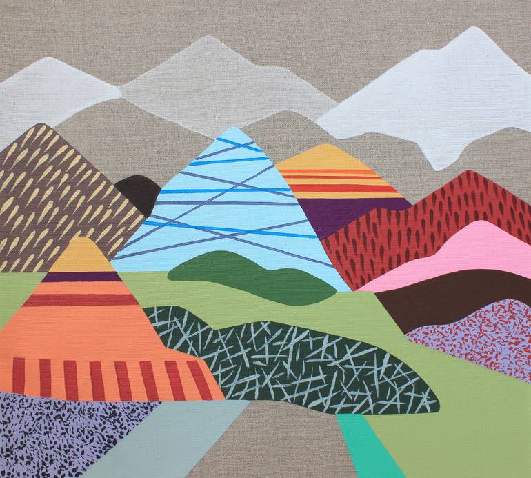 Original small scale landscape painting and beautiful nature view painting (beautiful place, nature scenery, highlands), 100% handmade colourful acrylic painting titled "In the Mountains 6" was created with bright acrylic colours on top quality 100% linen canvas. My landscapes are both idealized an...