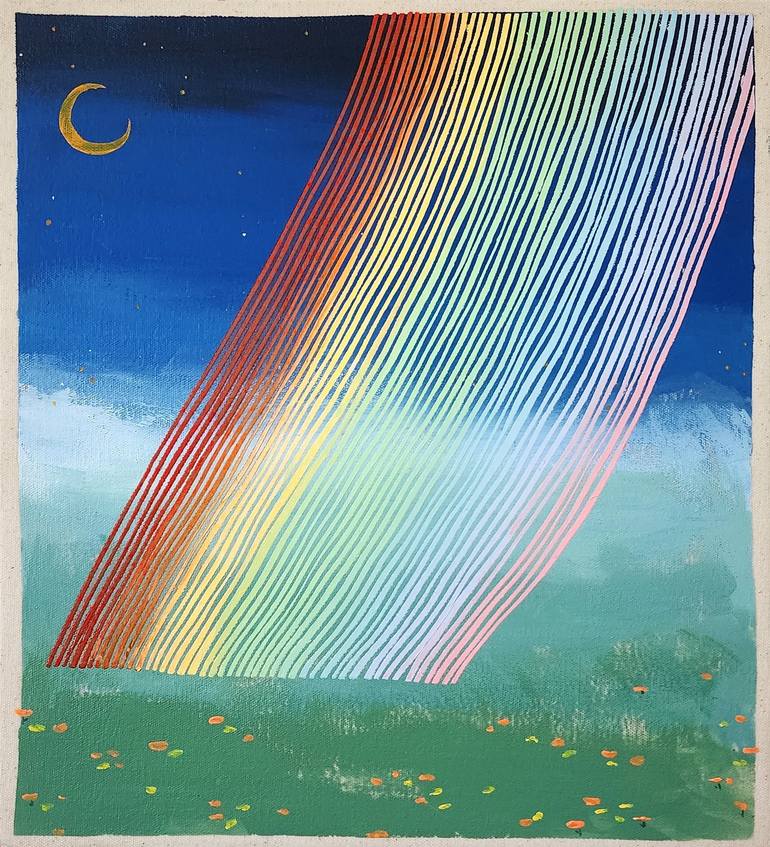 In the Presence of Something Rare & Ephemeral No. 9 oil and acrylic on canvas (aluminum stretcher) The night rainbow continues to be celebrated with addition of flowers on the field. Iteration 9, 10, & 11 feel similar and I feel "The Garden No. 6" is the next iteration where I really wan...