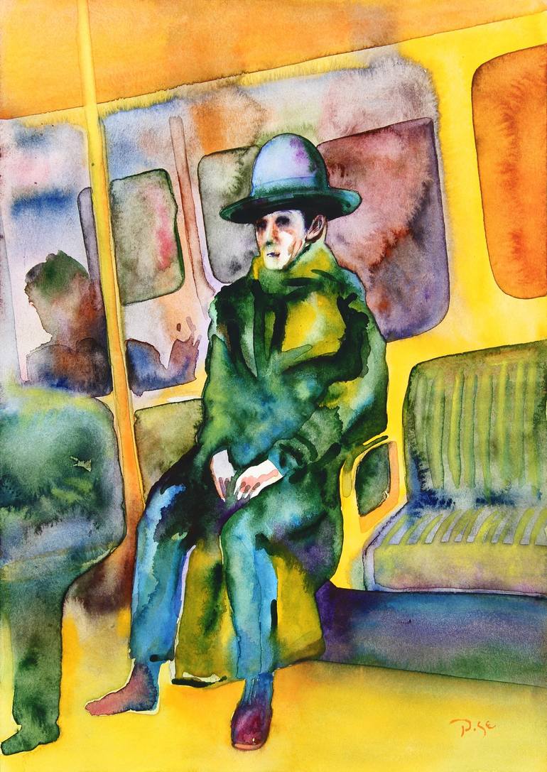 Portrait of a stylish man I saw in the London underground in February 2018. Painted in Brussels, March 25, 2022.