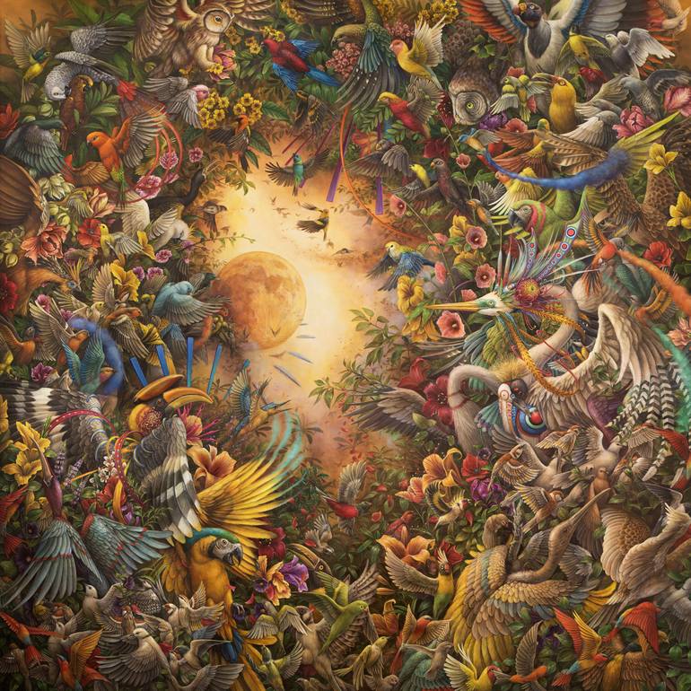 Hannah Faith Yata is half Japanese and was born and raised in a small town in Georgia. She grew up with a deep love of nature and animals passed down by the beautiful surroundings in the country and her mother. As a young adult, she studied feminism, psychology, and art in college. Graduating with a BFA in painting from the University of Georgia in 2012 she moved up to New York to focus on her work and how to put her ideas into paintings. In 2015, she was commissioned to do several works of art for musician B.o.B, which are now featured on his latest albums “Psycadelik Thoughtz” and the his "Elements" series. Now married to fellow artist, Jean Pierre Arboleda, the two painters work passionately to call attention to the darker themes of nature and industry. In her paintings, Yata seeks to interweave the parallels of the unconscious with the struggle of the natural environment and how it relates to views regarding the body of the woman and that of nature. Her use of masks express different types of emotion and characters while incorporating her fascination with other cultures and tribes. Body paint and designs play with a romantic idea of becoming more in touch with the earth and the life forces that dwell within, while also celebrating the feeling of energy and wildness. The surreal and psychedelic landscapes of her work erupt with tension and beauty, the grotesque and the wild to form exhilarating and mind altering dreamscapes.