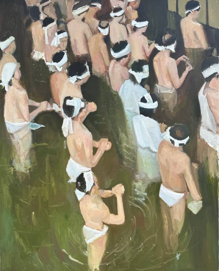 Men participate in a yakudoshi ceremony during the Kinekosa Festival at Shichisho-sha shrine in Nagoya, Japan. The festival dates to more than 1,000 years ago. Ten men in yakudoshi (ages of bad luck) and two boys parade from the shrine carrying a bamboo pole. They carry the pole into the Shonai Rive...