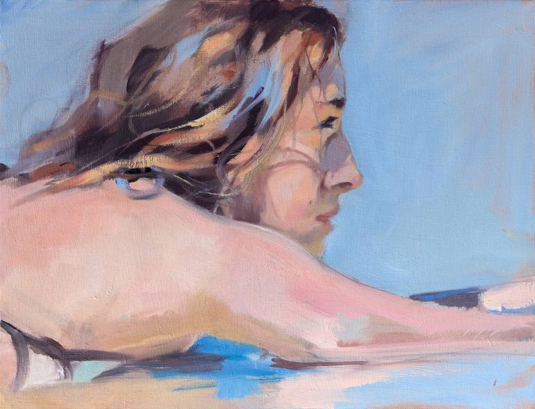 Girl on the shore of the beach looking at the sea. It's oil on canvas.