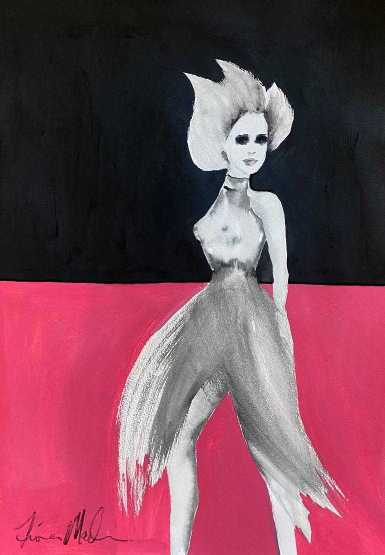 Ines - watercolour and acrylic on paper. Initially inspired by a black and white fashion photo. Comes with a certificate of authenticity and a handwritten thank you note.