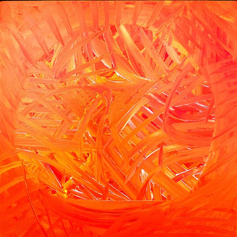 Burning Flames. Inferno sumarize the heat, high intensity, the sun. Orange - Yellow based, and a white touch, to produce Inferno. Acrylic on Canvas, 60x60 Format.