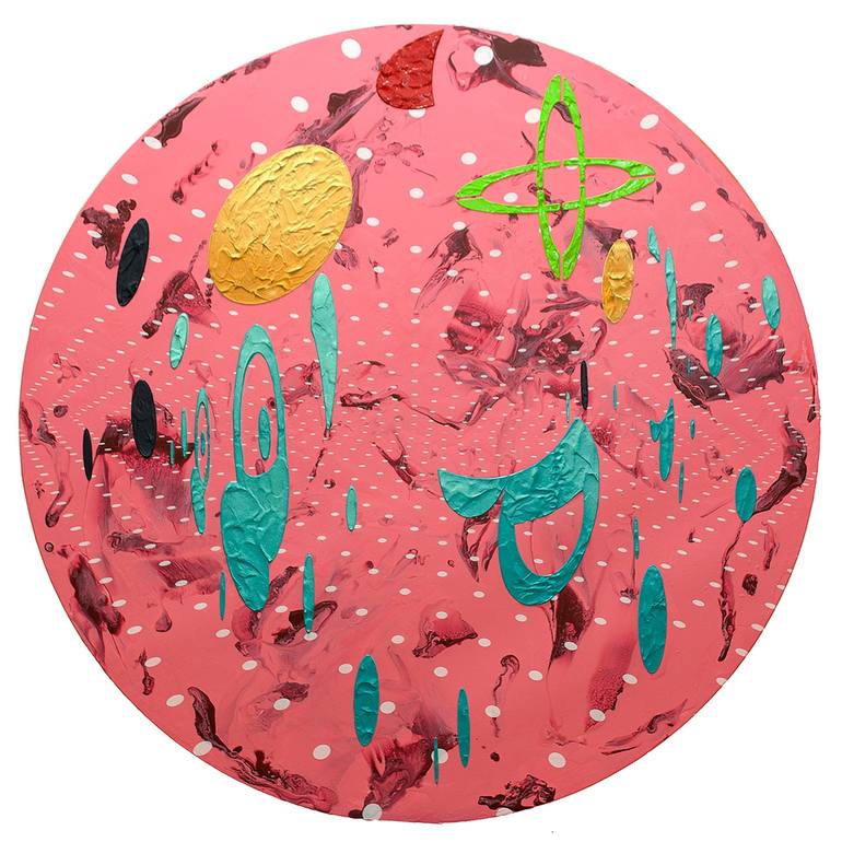 I think about the existence of me. Who am I? Many of these stereotyped questioners have been around since thousands of years ago, and there are still many people from current scientists to artists. I am one of them, and I have no doubt that I do art and that is the subject of the work.So what should I do as an artist? What is the work I'm working on? In conclusion, my work is the convergence between layers. There are elements in my work that are expressed regardless of my will. The paints flowing down by gravity, I consider this the primary layer. The constant dots expressed by the machine, I consider this a secondary layer. And I add my last imaginative object or my rhythmical expression of emotion on them. And I consider this the third layer. In this way, I think that three helpers, the universe, the age, and I make up a screen. Natural elements, the laws of nature, the mechanical elements that symbolize the age, and the things I express last, arbitrary elements. These three layers are stacked to complete the work. It is my work and my mission as an artist to express these three elements visually and beautifully and harmoniously. As in my work, I add my existence and nonexistence to the time and the world symbolically to express them. And so through my work I represent. "I exist in the present age in space."