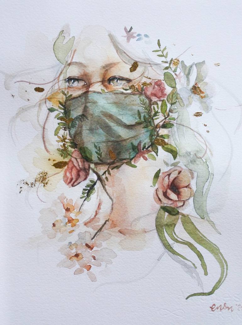 Inhale watercolor on paper 9x12 inches 2021 original art by enondebelen