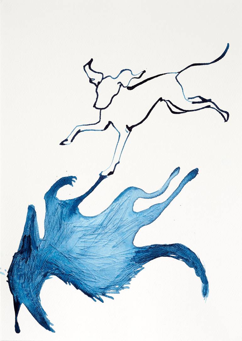 My dog is an affectionate shadow of mine at home, following me here, there and everywhere. His own inner nature of the hunting wolf comes out when we're out walking. I wanted to portray his shadow self, and his interaction with it.