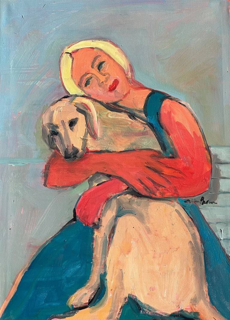 Ready to hang . The deep bond we share with pet dogs is hard to describe. In this painting I tried to visualize the feeling of love and belonging and also the precious nature of it.
