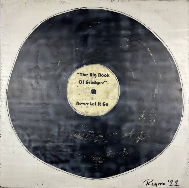 Inside Jokes - A bit tongue in cheek and strictly for fun, this little series is both a little bit of a memoir and a nod to the area where I grew up. "The Big Book of Grudges" by Never Let It Go 24"x24" Layers and layers of encaustic (bees wax & damar resin), natural fiber paper, ink, oil, gesso ...