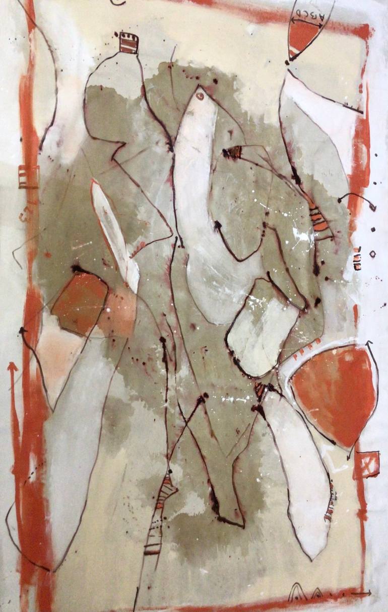 I have known Olga Armand Ugon for a few years. I've seen her painting. Actually, I have seen her enjoy painting; I have seen her suffer while painting; in short, I have verified her creativity in action and I am happy to say that she belongs to that group of people who think, reflect and express themselves by doing. She saw then, the need for expansion as one of the characteristics of her work. Medium and large surfaces always suited her work better than small ones. In the latter, she would feel constricted, suffocated. Her painting should give way to his ample gesture, although, as she controls proportions very well, she also allows space on her paintings for small pictures and stains. This amplitude could be applied, in another sense, to her chromatic subject, which goes from liquid to dense and lumpy. The restless spirit of Olga Armand Ugon cannot be comfortable imposing limits, thus, the painting surface is a witness of the struggle to organize these expansive and free impulses. We could say that her personality needs to be reflected still in how she works with the coloring, since she has to move also between the random (blasting, broad strokes) and position, size, color, of them in the basic plane, because that control would integrate them into a structure, that of the image. It goes without saying that her concept of structure accepts relatively randomness as one of its components. As in her personality, forms and matter struggle between a liberating impulse and a sense of order. The collage, linked to the pictorial subject and the linear drawing of the drawing was the appropriate vehicle for her rich expressive display. Despite what has been said, her spontaneity accepts stratifications. Each layer can have distribution of shapes, colors and signs different than the one that follows it. However, it is either translucent (veiling) or partially covers the preceding layer, generating in that appearance new forms, new graphics or signs. It would be appropriate then, when we refer to the works that apply that procedure, to speak of real palimpsests. The whole of her work uses a sensitive geometry, both in the limits of its forms as well as in the surfaces they limit. In any case, this geometry appears in the organization of forms in the basic plane. There. always with freedom, she manages notions of rhythm and proportion. Many of her works use white glazes, which give them a neat transparency.