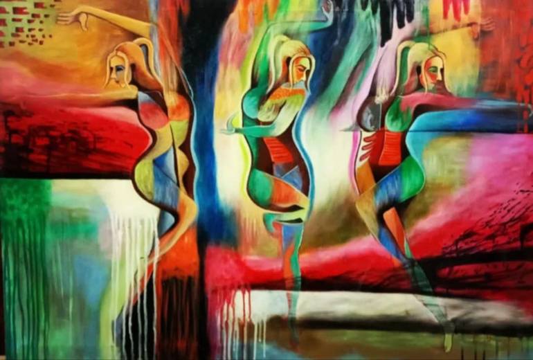 This painting is about intensity, music, drama, story, Power and intensity, this painting also have voice, this painting is about realism and abstract art , with many form of art i try to express the intensity of music, tales even water .