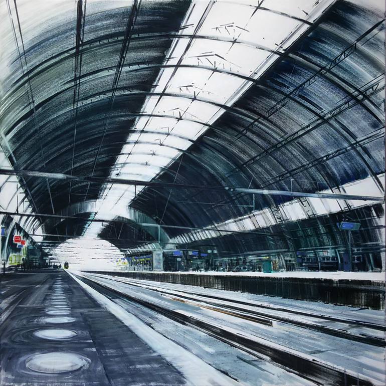 The functional shape of constructions like a station, triggers me to do something with it. I love perspective and the industrial. I hope you, as a viewer, will feel the strength and movement that inspired me. I always use 'Rembrandt oil paint' because of the high quality, ability to blend and the sm...
