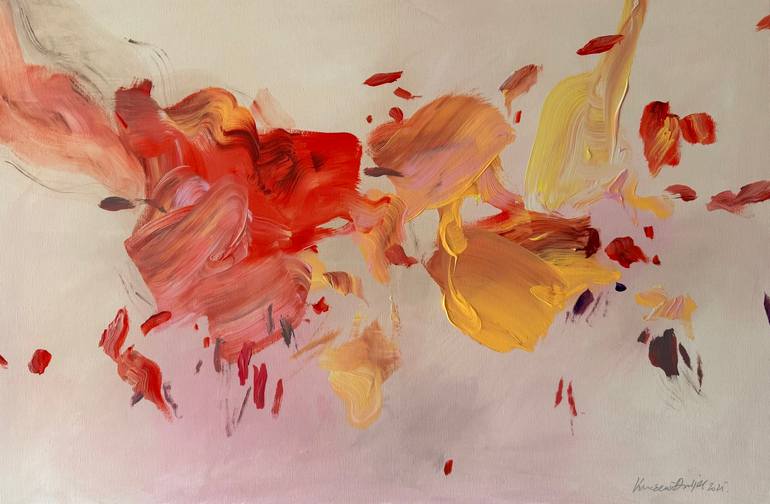 This artworkwas created in 2025. It is rich in brushstrokes placed on a fluid background.